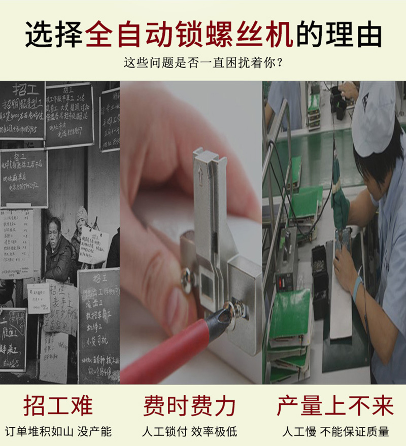 該款產品適用鎖付衛浴地漏上的螺絲,該款螺絲機的效率在2pcs-4pcs左右,可以節省70%的人力,提高4倍生產效率,